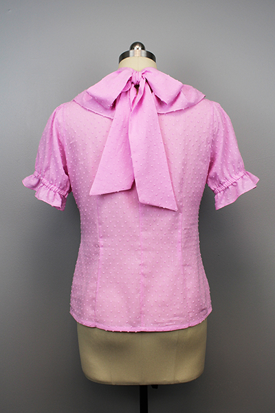 The Bow Collar Blouse is a great wardrobe-building piece because it's both comfortable and versatile. Made from a light-weight, 100% cotton fabric, it's perfect for getting all dressed up in warmer weather. The blouse slips on over the head and closes at the neckline with a bow that can either be tied in front or in back, depending on the look you want for the day. Choose from pink, cream, or white.